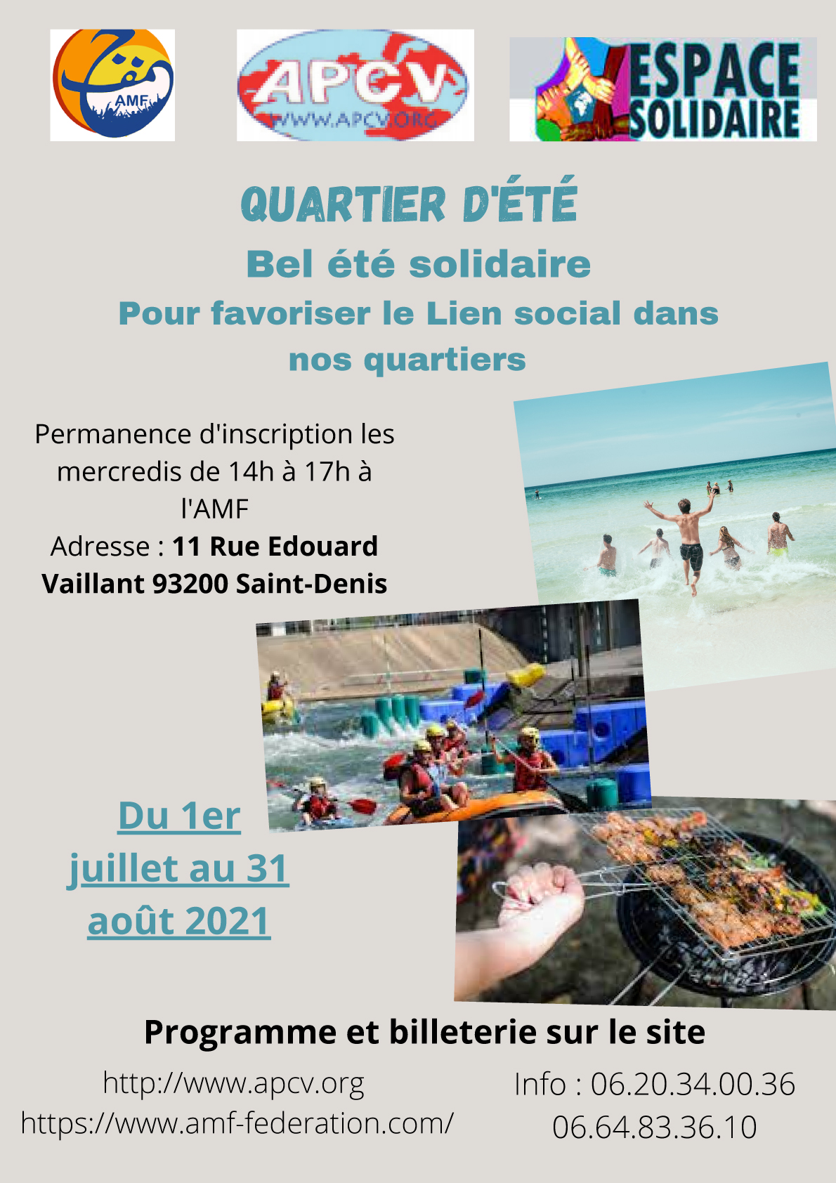 Quartier d'été - Bel été solidaire Pour favoriser le Lien social dans nos quartiers http://www.apcv.org https://www.amf-federation.com/ Info : 06.20.34.00.36 06.64.83.36.10