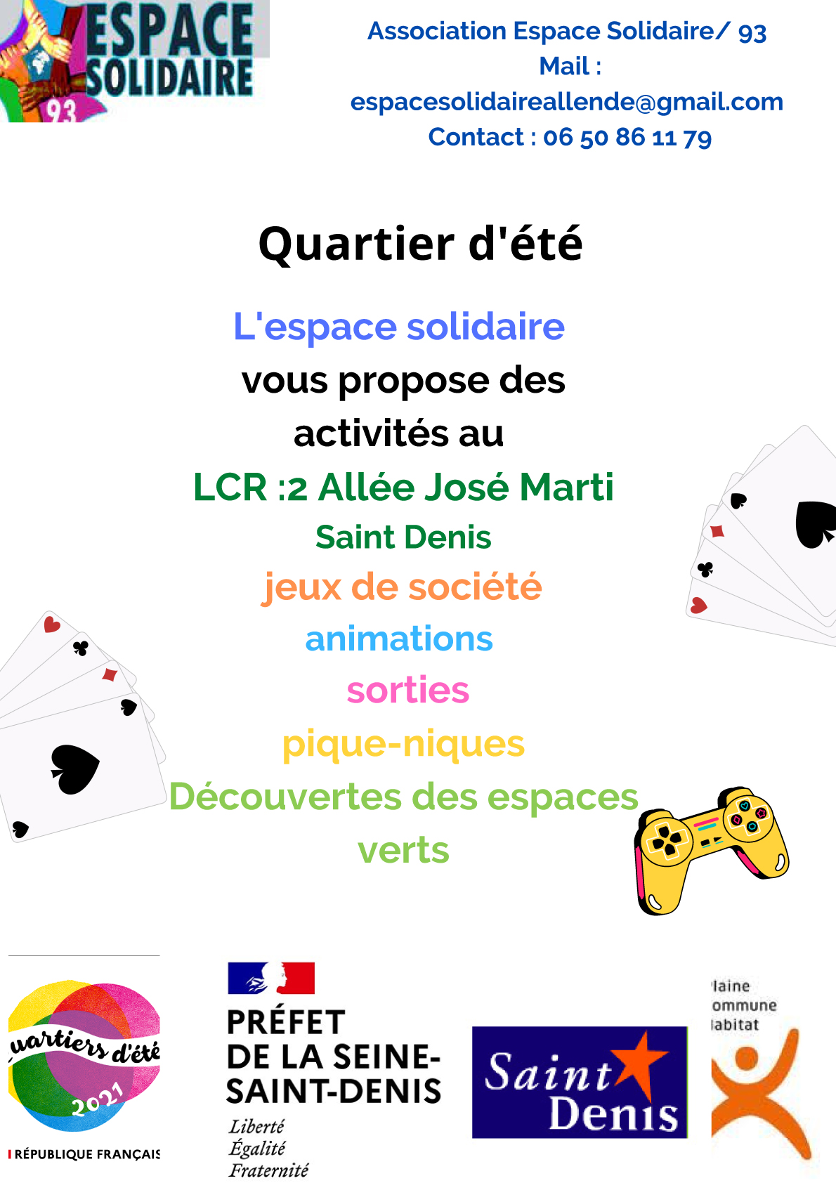 Espace solidaire 93 organise dans le cadre des activités « Quartier d’été » de nombreuses animations culturelles avec les jeunes et les moins jeunes.