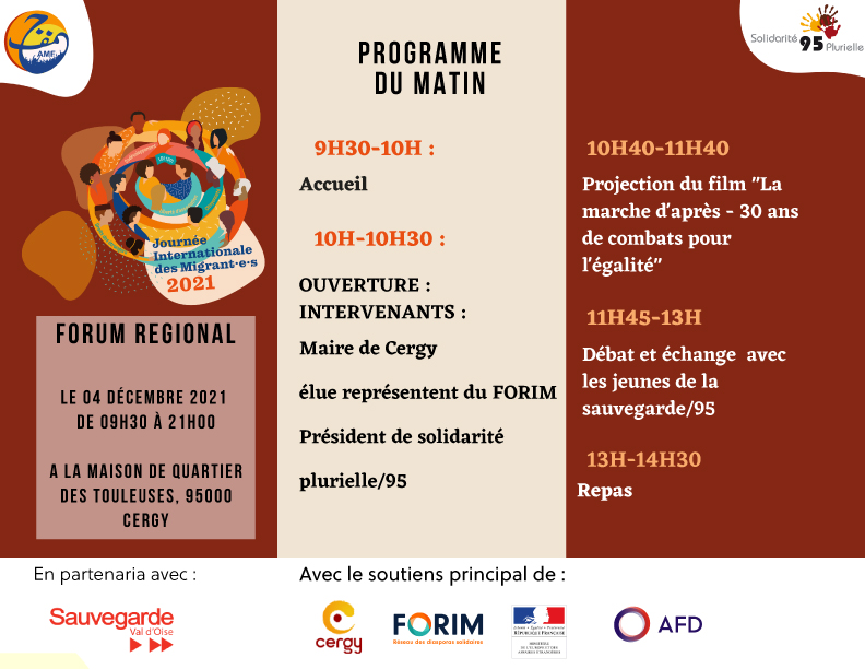 Dans le cadre de la journée internationale des droits des migrants l'Association des Marocains en France et Solidarité plurielle /95 vous invitent au Forum régional sur le thème de l’immigration et le mouvement associatif